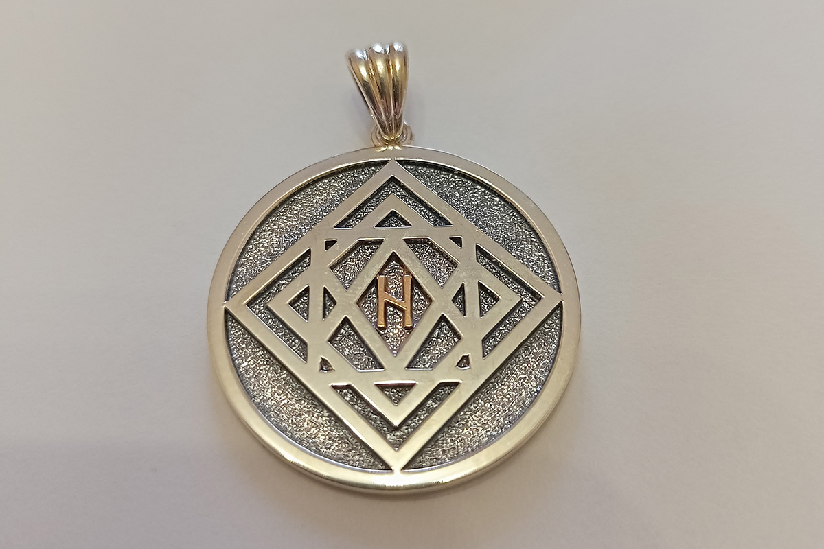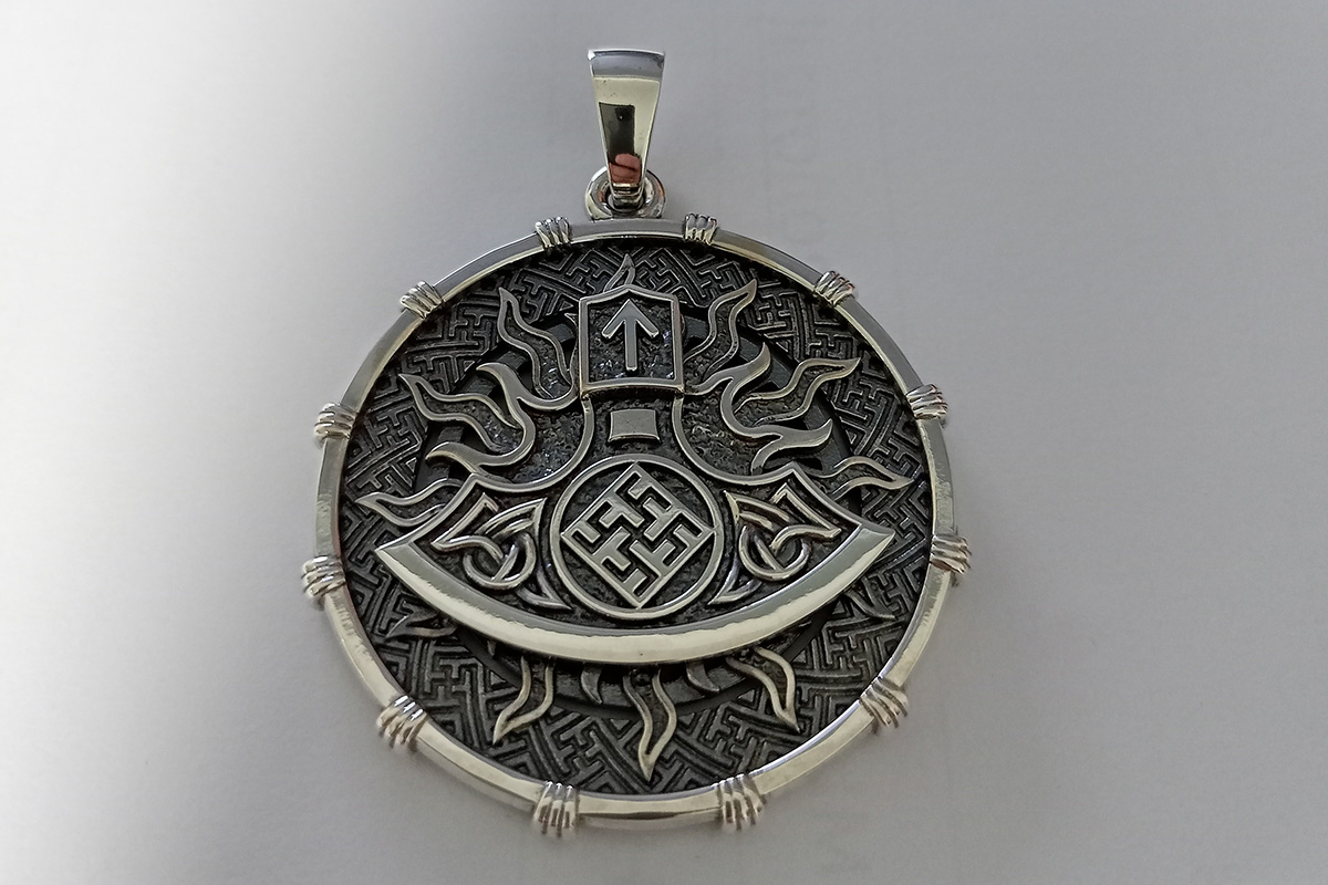 Алатырь с Солнцем (серебро с золотом), 30 мм